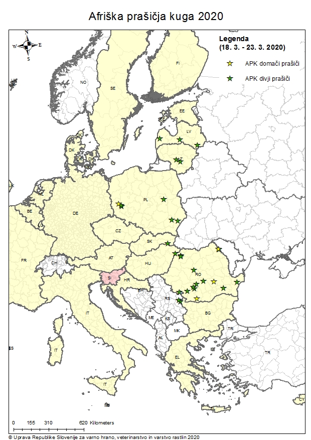 apk_uvhvvr2020-03-25T10:41:03+01:00Na podlagi podatkov o prijavah pojavov oziroma izbruhov APK v Sistem EU za poročanje in obveščanje o boleznih živali (ADNS) je pripravljen tedenski pregled situacije. Več objav Ukrepi ob sumu bolezni! Vsak sum, da se je pojavila APK mora imetnik živali nemudoma sporočiti najbližji veterinarski organizaciji. Prijava suma