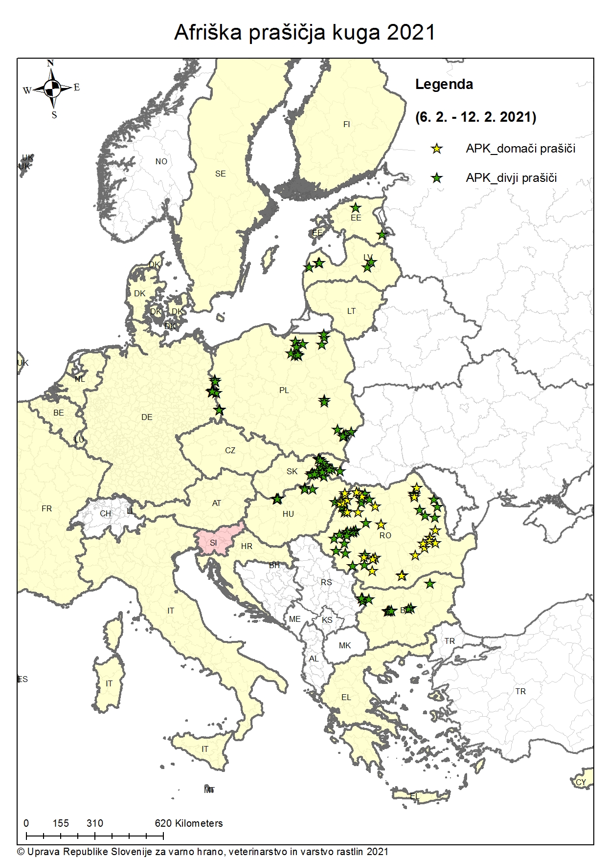 apk_uvhvvr2021-03-01T11:43:55+01:00Na podlagi podatkov o prijavah pojavov oziroma izbruhov APK v Sistem EU za poročanje in obveščanje o boleznih živali (ADNS) je pripravljen tedenski pregled situacije. Več objav Ukrepi ob sumu bolezni! Vsak sum, da se je pojavila APK mora imetnik živali nemudoma sporočiti najbližji veterinarski organizaciji. Prijava suma